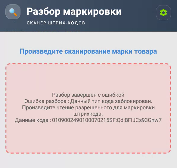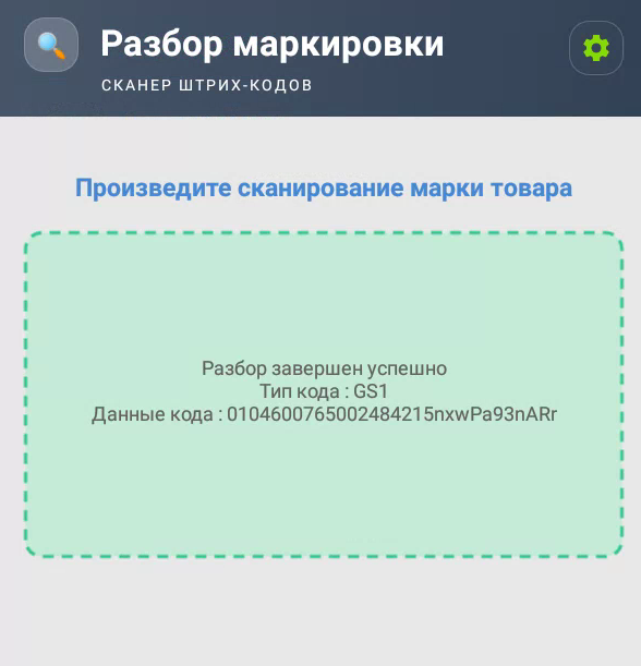Теперь при считывании товарной марки у вас будет появляться сообщение об успешном разборе и определяться тип кода.