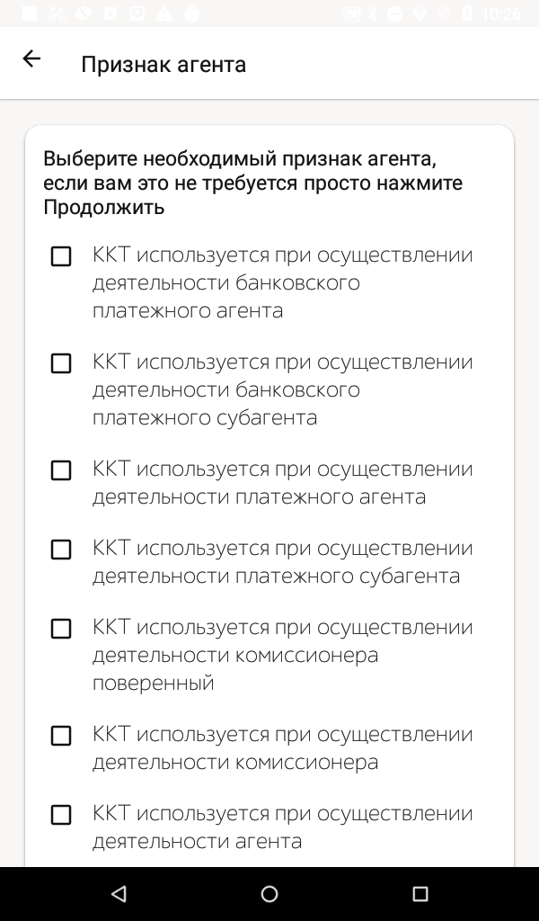 - Далее выбираем признак агента, если требуется. Если не требуется, просто нажимаем кнопку Продолжить.