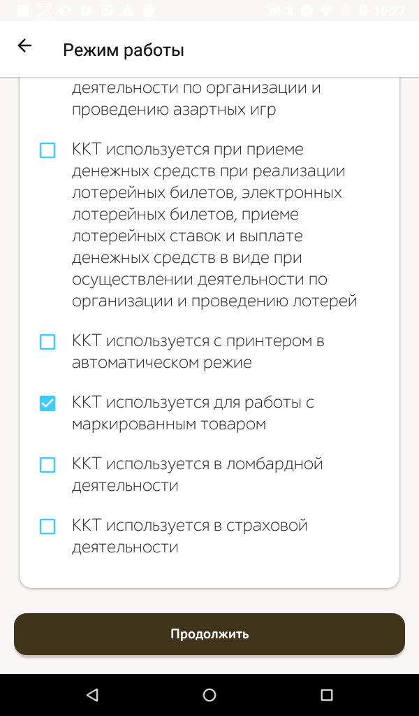 - В следующем меню указываем режим работы. Если его нет, также просто нажимаем Продолжить.